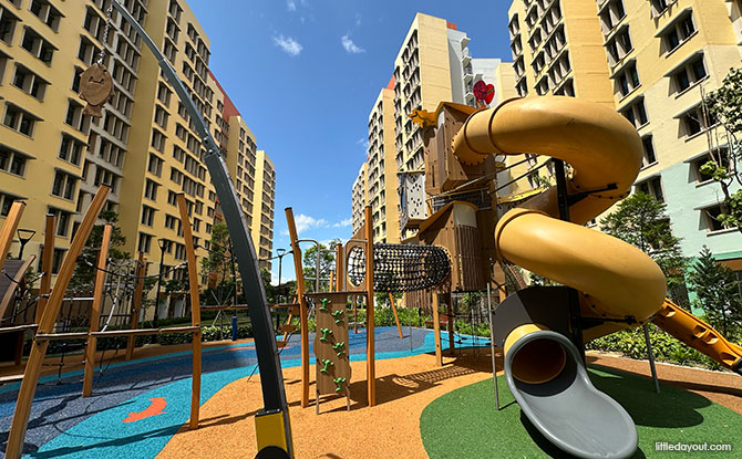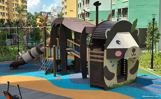For families with kids, Hougang Citrine playgrounds consists of three play areas. These draw on one of Singapore’s most beloved animals and the history of the area for inspiration.