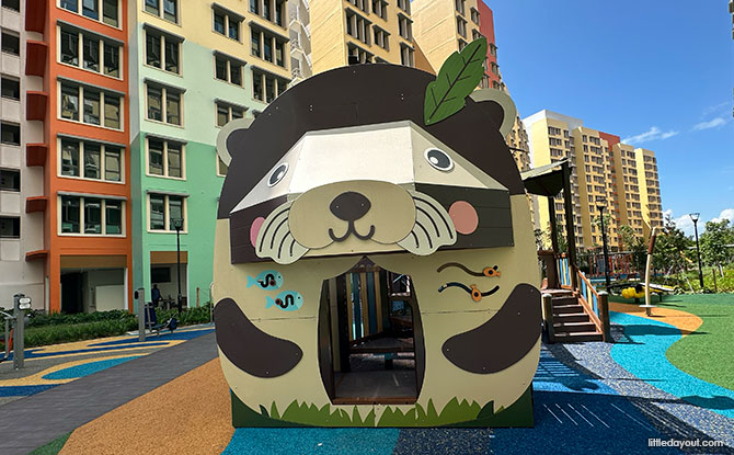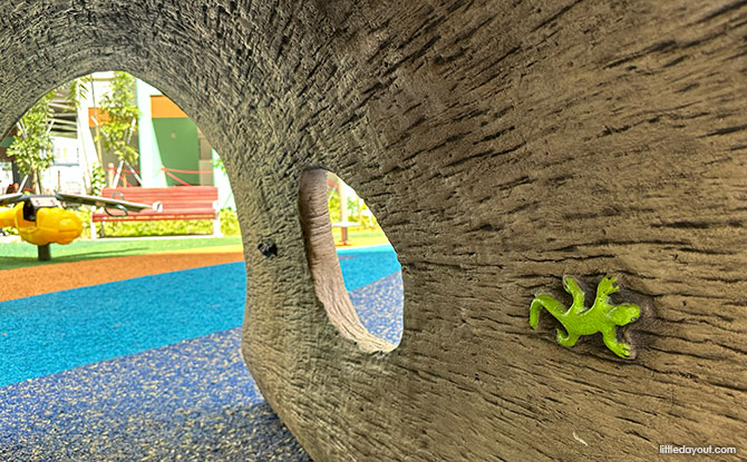 The main play structure here features a cute otter facade with an entrance for kids to enter and play. This play structure is inspired by the smooth-coated otter, the most common species of otter in Singapore.