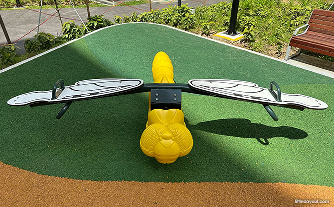 Beside the otter play structure, another piece of play equipment at this Hougang Citrine playground is a cute dragonfly see-saw.