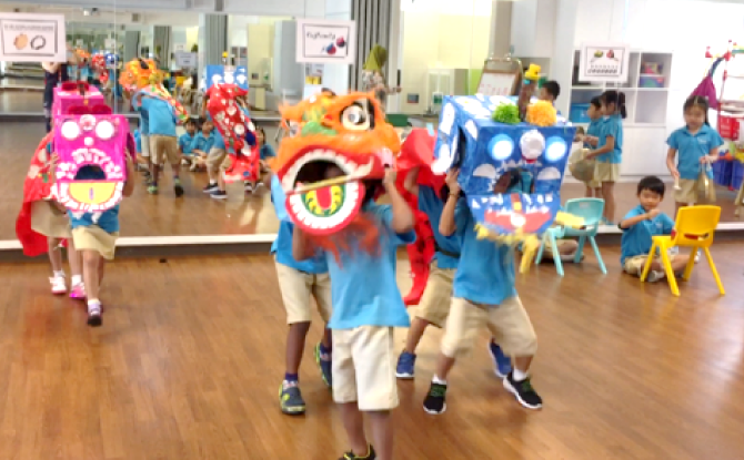 Children in MOE Kindergarten learn about the Singaporean identity and culture through food, outings, Big Books, songs, rhymes and games! Such authentic learning experiences make learning relevant, real and meaningful for the children. At MOE Kindergarten @ Springdale, the K2 children’s curiosity was piqued after they watched a lion dance performance. They embarked on a project to find out more about the traditional Chinese dance. They discussed the different types of characters and musical instruments needed to put up their own lion dance performance. The young ‘lion dancers’ then put up an energetic performance for their parents during Parents’ Day!