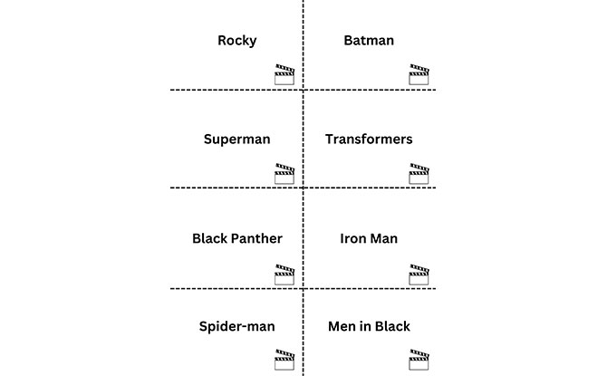 Very often you may find that charades are themed based on certain categories. Common categories include movies, songs, television, books, famous people or theatre plays.
