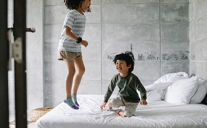 Parents can also play this with their toddlers by putting soft objects such as pillows on the floor and allowing their toddlers to safely jump from one end to the other. There are also indoor playgrounds that toddlers can fully utilize to play this game.