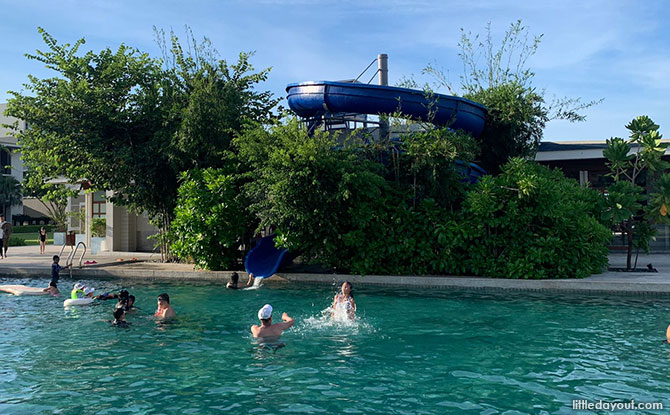 The outdoor pool also has a waterslide that both kids and adults can enjoy.