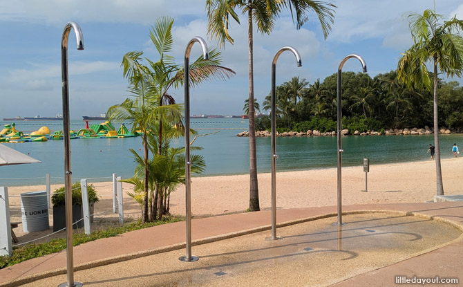 There are a few open air showers to use right in front of the counter. Use those for rinsing after your water-based adventure!