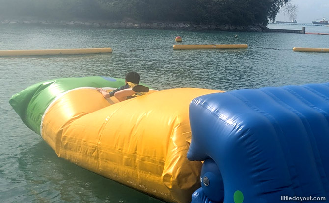 Some might think slipping and falling into the sea is part of the fun at Hydrodash. We’d much rather have more time bouncing around on the mega bouncy castle on the sea! Hence, aqua shoes are advised so you can stay on the floats much longer.