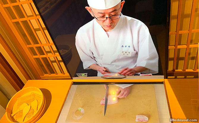 Another highlight of the exhibition is a multimedia display that has been made to look like a sushi counter.