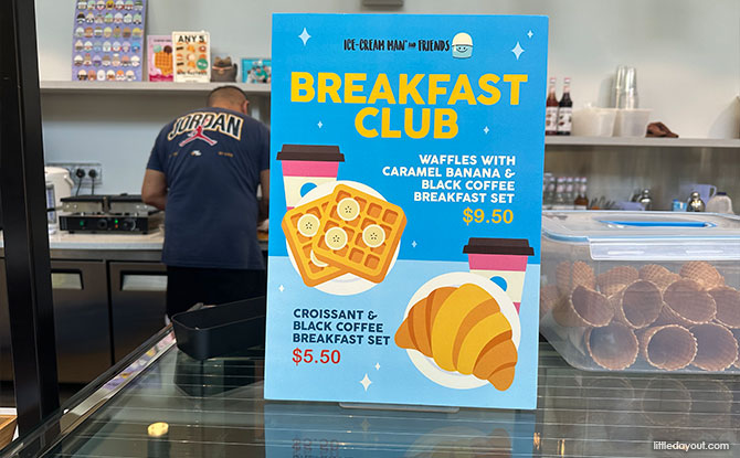There is also a Breakfast Club set comprising of either Waffles with Caramel Banana & Black Coffee at $9.50 or a Croissant & Black Coffee for $5.50.