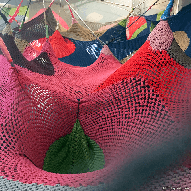 Another highlight at Imaginia Playland Bangkok is the Dream Jungle rainbow net. Kids can climb onto the knitted web and hide in little pockets around the play net.