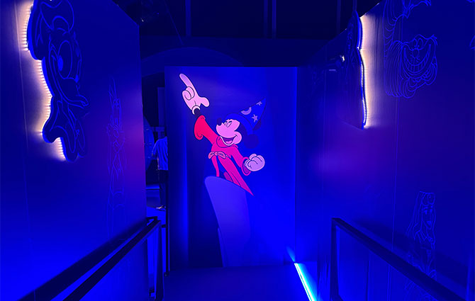 These are just a teaser before you are let into the theatre, down an illuminated tunnel, beckoned forward by Sorcerer Mickey.