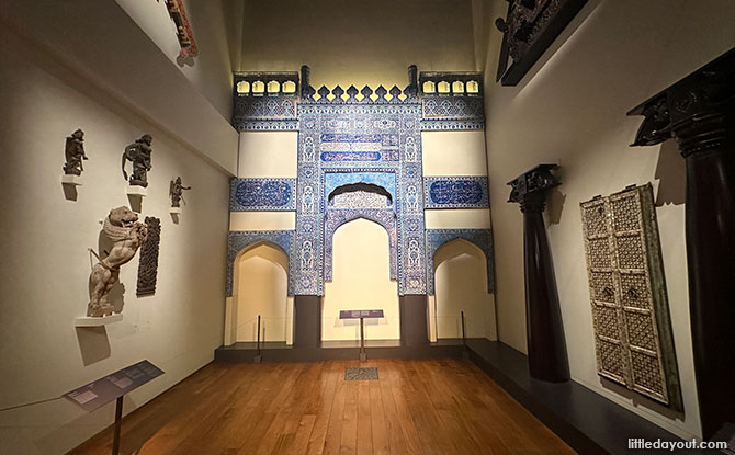 But before you view those exhibits, take time to admire the tiled facade of a mosque from the Multan region in Pakistan which also reflects Persian influence.