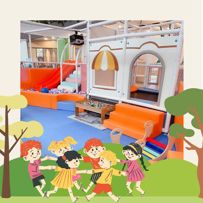 From indoor adventure courses, trampolining spots to play-pretend spaces and fun elements, check them out! Don’t forget to read the age, height and weight requirements stated before you choose your playground.