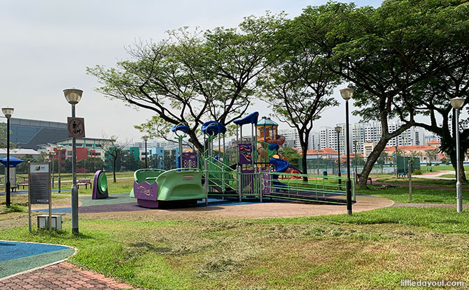 Other variety of play equipment at the Jalan Bahar Park playground include an inclusive swing which can accommodate wheelchair users, and a structure that is accessible via low, gently sloped ramps.