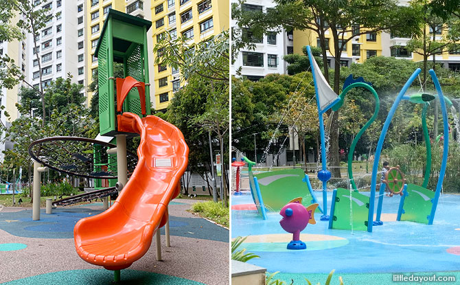 Jelutung Harbour Park is nestled in the midst of the housing blocks at Admiralty Link. Surrounded by tall flats, the neighbourhood park feels well-sheltered and not only does it have several playgrounds but it is one of the few neighbourhood parks with a water playground.