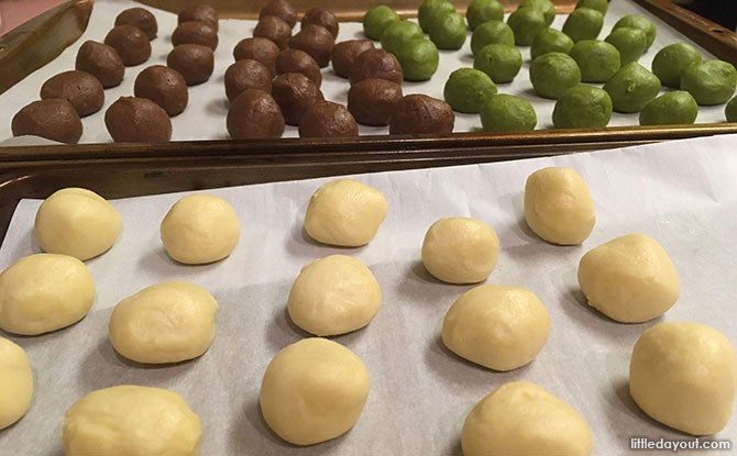 - When done, keep them in the fridge while you work on the other flavoured dough.