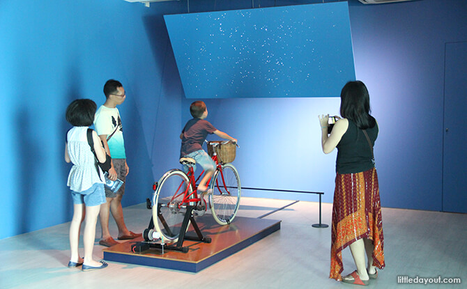 Skip over to the next artwork installation by Singapore-based artist Vincent Twardzik. The tots will ooh and ah in this room filled with bicycles and strange-looking machines.