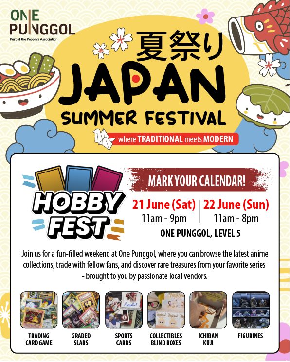 Have a fun-filled weekend at One Punggol’s Japan Summer Festival on 21 to 22 June 2025, where you can browse the latest anime collections, trade with fellow fans, and discover rate treasures from your favourite series – brought to you by passionate local vendors! Get more details about the Japan Summer Festival.