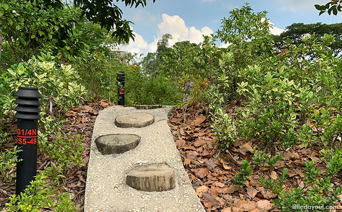 And extension of the nature play found at the children’s playground and Butterfly Maze, the Logs Trail features a cluster of log that kids can climb up and down on.