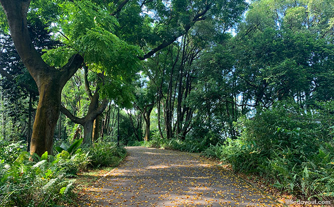 At the top of Kent Ridge Park is a paved walk under beautiful trees. This is easily one of our favourite spots at Kent Ridge Park.