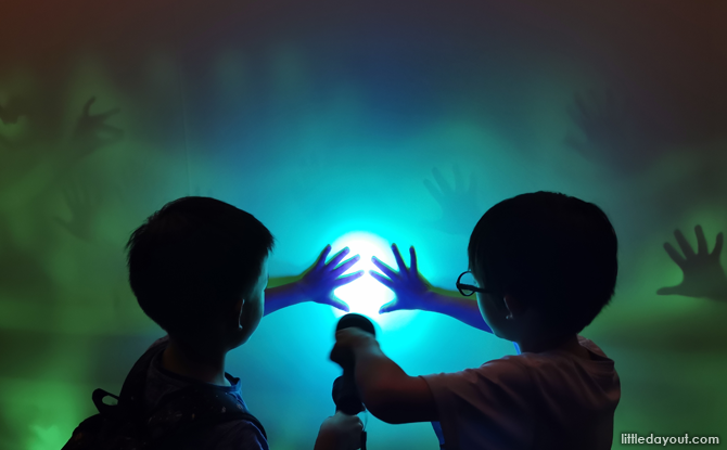 Aside from coloured tiles, coloured pebbles, coloured sashes and 3D shapes, visitors can even use torches to paint with light! You can also form shapes with your finger and hands for an even more extraordinary experience.