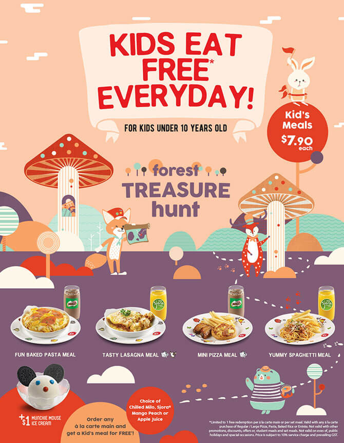 Honest foods are always preferred when bringing our kids out to eat. Give the kids a wholesome weekend treat at NOM – No Other Meaning where kids below 10 can eat for free with every order of a main dish. Adults can choose from a variety of mains such as rice bowls, pizza, burgers and salads. Terms and conditions apply.
