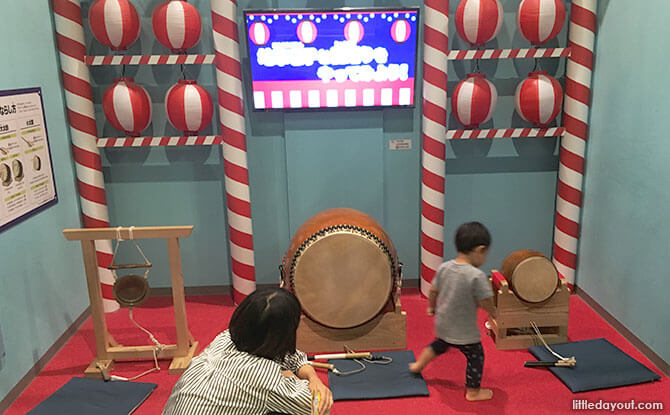 Children get to try out percussion instruments from around the world, including Japan too.