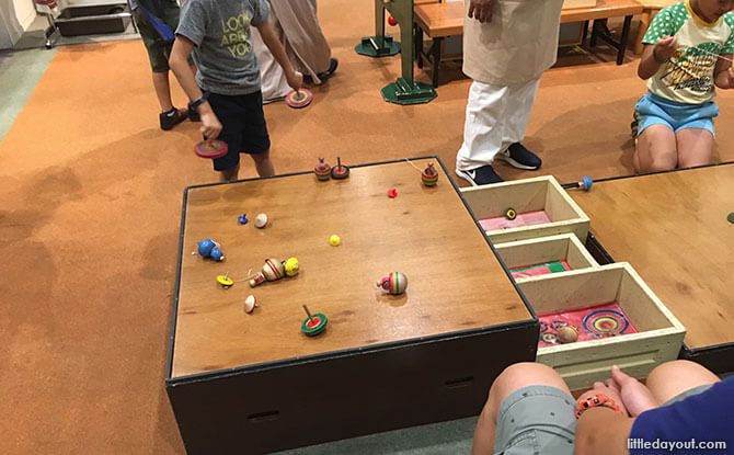 Toys such as spinning tops allow kids to learn how people around the world play. There are also dress-up studios for kids to learn about culture through the clothes people wear.