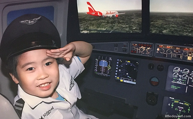 Our kids wanted to do both so they first “boarded” the plane (a real but retired one) and entered small cockpits where they learnt how to land a plane on flight simulation as Pilots.
