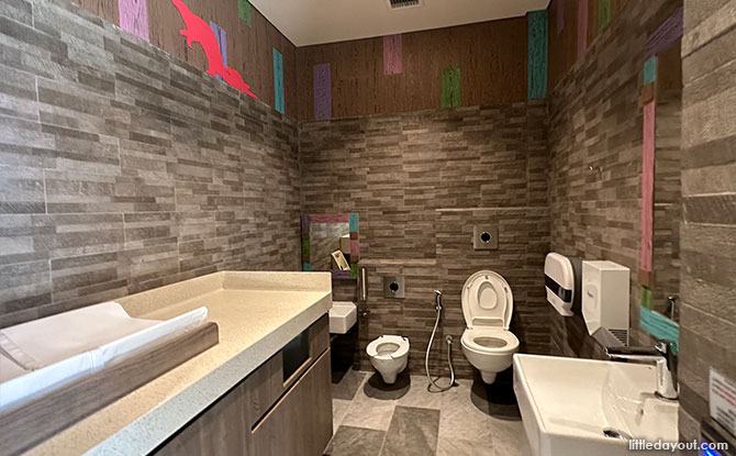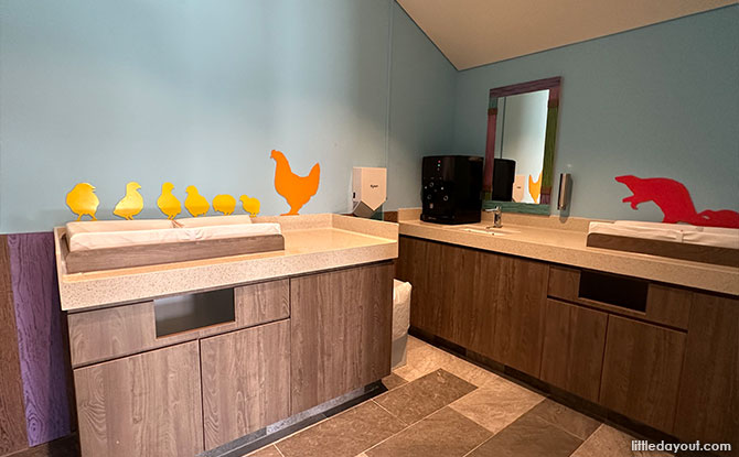 For nursing mothers and children who need their diapers changed, there is a diaper changing room at the lower level, close to the Splish Splash water play area.