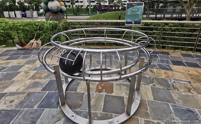 There are two ball machines sitting next to each other that incorporate icons and elements of Science Centre Singapore. Simply give a wave or turn the wheel to influence the movement of the balls.