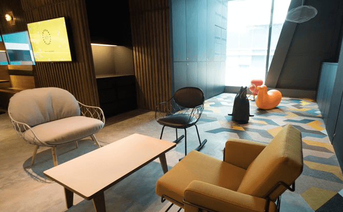 Although you’ll find neither a play kitchen nor a mini slide here, there is a box of toys (with blocks and such), super cool hipster rocking horses (from premium design store XTRA), and a sizeable TV screen, often with a good Disney or Pixar cartoon showing.