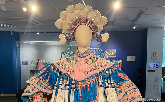 Occupying pride of place at the centre of Kreta Ayer Heritage Gallery is a display of two resplendent opera costumes which would have been worn by those playing the lead male and female roles.