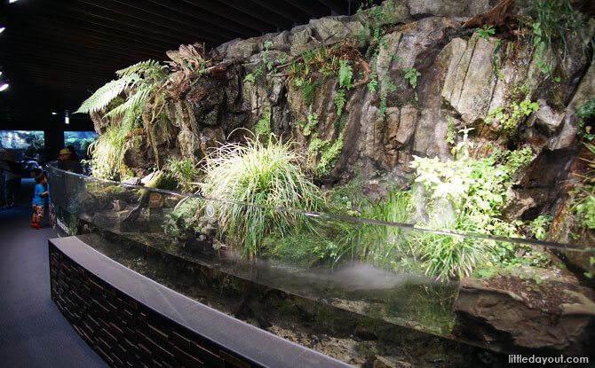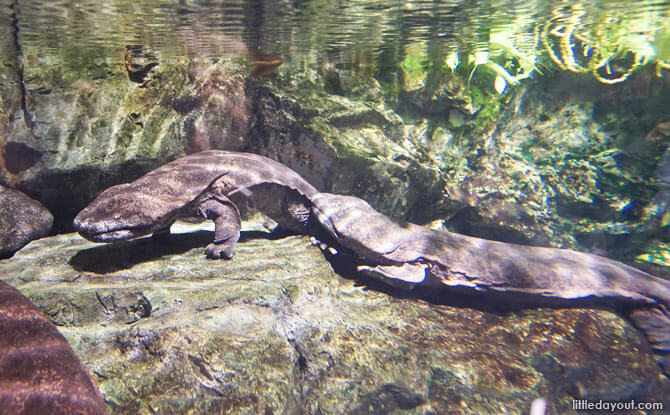 Inside, one of the first few exhibits at the Kyoto Aquarium is based on the Kyoto river system. Here, the star exhibit is the Japanese giant salamander.