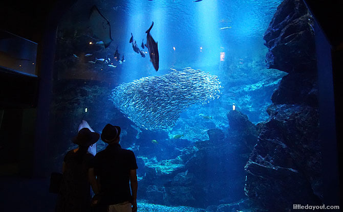 One of the most impressive exhibits in the aquarium is the Sea of Kyoto. This spectacular indoor tank showcases the rich marine life found in the sea of Japan. There are Japanese pilchards, tilefish and other aquatic creatures.