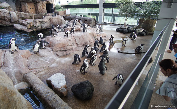Kyoto Aquarium also has outdoor penguin exhibit, the Penguin Skywalk. On display amongst a rocky landscape are cape penguins, natives of southern African.