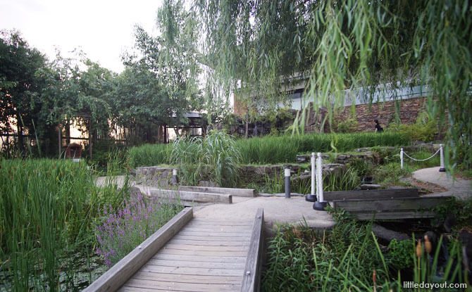 The last section of the aquarium is an outdoor area known as the Countryside of Kyoto. This area is sculpted to be reminiscent of rice terraces. It is designed to blend in with the rest of Umekoji Park.