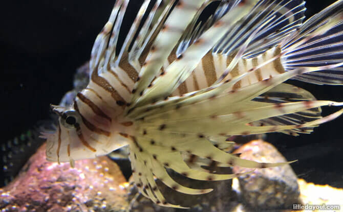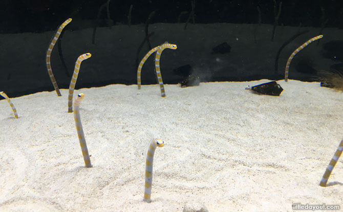 These include garden eels and clownfish. Wall-mounted tanks allow visitors to get an up close look at the animals.