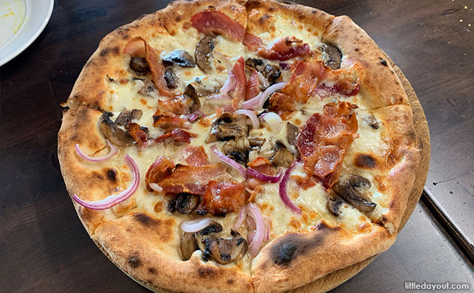 For those who are not fans of truffle flavours, the Pancetta Affumicata e Funghi is an excellent option which are sure to delight the tastebuds of kids as well. With crispy bacon, mushroom and red onions atop, it is a delicious combination that cannot go wrong.