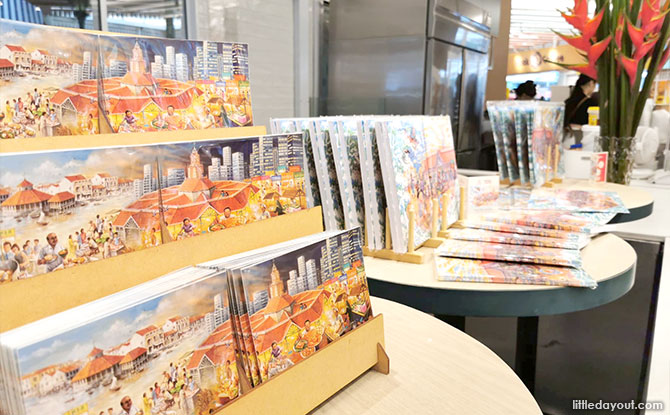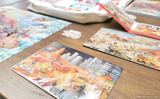 If you are a fan of Ah Guo’s illustrations, you can take home a piece of his artwork in the form of limited edition collectibles including a twin postcard collection and an EZ-link card collection These merchandise are available only at Food Folks.