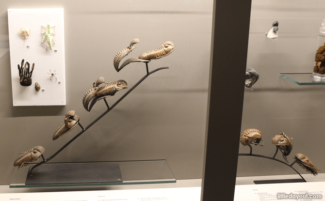 In the section devoted to arthropods or animals with external skeletons (think scorpions, prawns and crabs), among the interesting exhibits here are fossils of trilobites, a marine creature that existed before the dinosaurs. Other specimens here include ‘live’ scorpions and giant crabs.