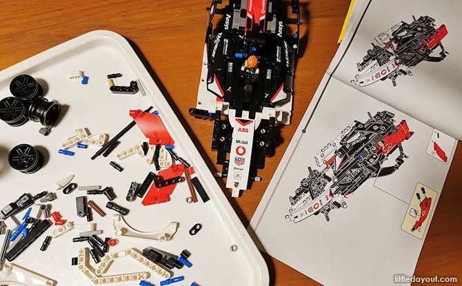 When my 10 year old was asked to pick his set of choice, his eyes were naturally drawn to its sleek design. His fascination with electric cars was piqued as he focused on building the Formula E Porsche 99x.