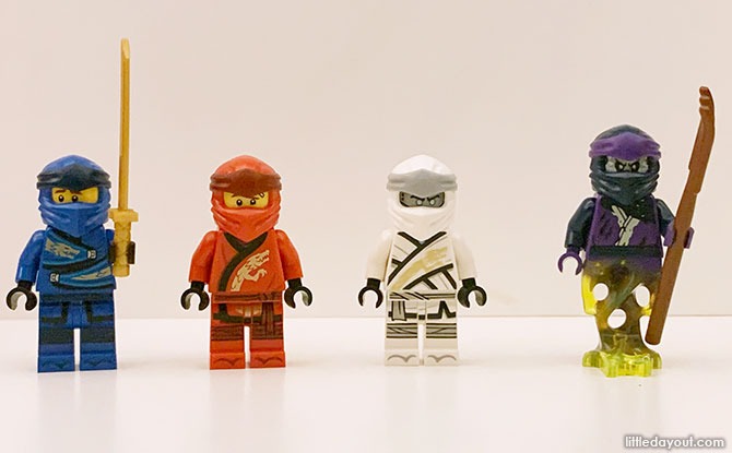 The playset comes with a total of four minifigures. There are ninjas Kai, Zane and Jay and their enemy Ghost Ninja Karen.