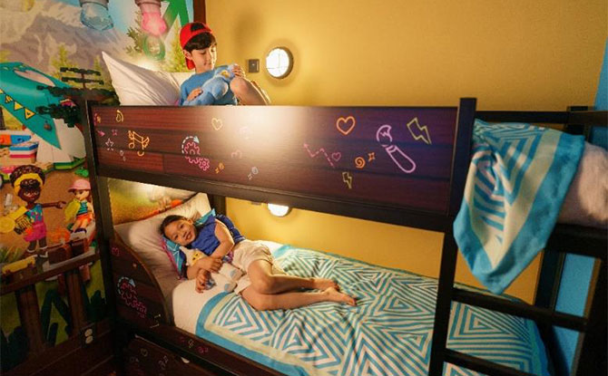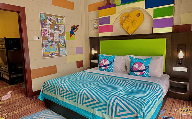 Each of LEGOLAND’s rooms has a separate sleeping area that can take up to five adults and children.