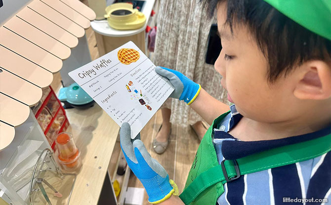 We chose Tomato Pasta and Crispy Waffles as these two catered to both our savoury and sweet palettes. Other options on the Little Cook cooking menu included Cheesy Baked Rice, Soup Noodles, Hawaiian Pizza and others. All the ingredients are provided.