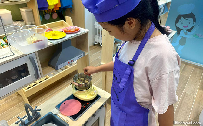 After being welcomed into Little Cook, the kids began their adventure by donning cute kid-sized aprons and mini chef hats.