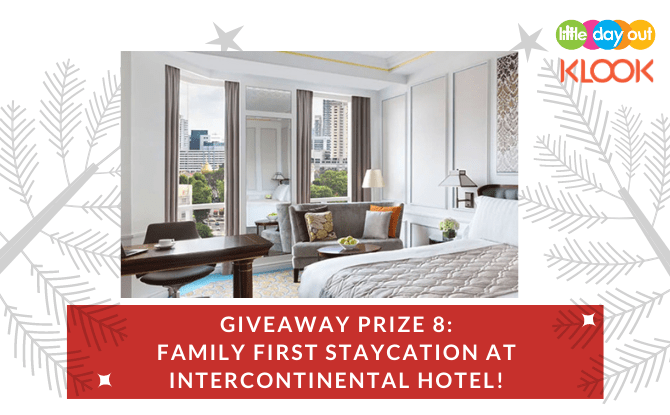 From 22 to 24 December, stand a chance to win a family staycation package at InterContinental Singapore. Rest and recharge with the family in a deluxe room. This family staycation comes with meals, teepee for kids, welcome amenities and unlimited ice cream for kids!