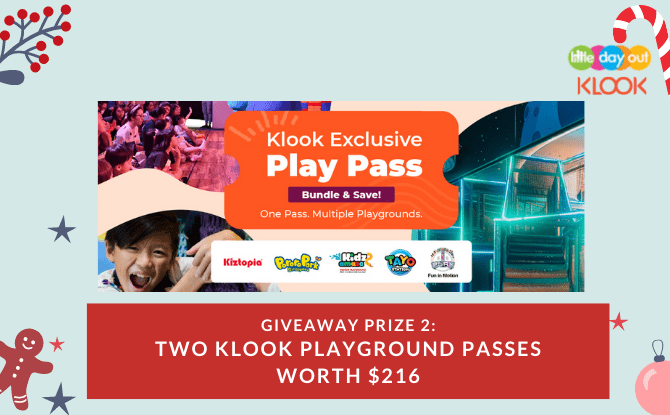 Klook Playground Passes allow pass holders to save up to 20% on their visits to top indoor playgrounds in Singapore. From 21 to 23 November, we will be giving one winner a chance to win two Klook Playground Passes. Each playground pass lets the holder visit all-time favourite playgrounds such as Kiztopia, Kidz Amaze, Tayo Station, Pororo Park Singapore. The pass is valid for four months and each Playground Pass is valid for 1 adult and 1 child. Read more about the prize here.