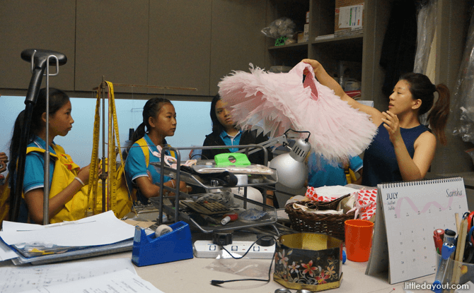 When we visited the wardrobe room, the company’s beloved wardrobe supervisor – Auntie Florence – was at the sewing machine, working on a costume.