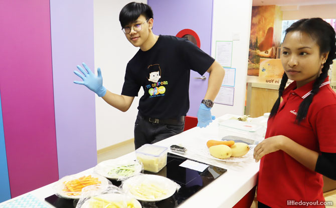 The kids loved the sensorial food-making experience, and some were spotted snacking on the ingredients – which included thick strips of mango and MindChamps’ premium cheese – even before they went into the rolls!