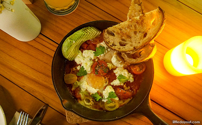 From the brunch menu, the Shakshuka ($20+) is an appetising dish that comprised of juicy tomatoes, coddled eggs, feta and avocado slices that give its lush creamy texture, paired with sourdough.