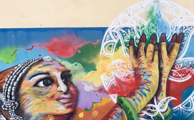 Around the corner from the Indian Heritage Centre is this colourful mural which captures the culture of the historic district.